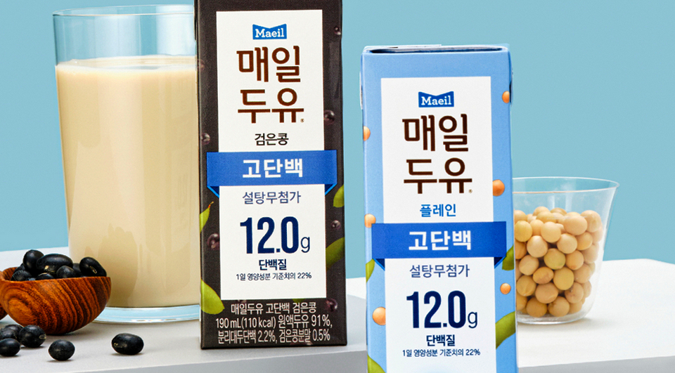 매일두유 고단백 검은콩이 건강한 단맛을 구현한 기존 매일두유 검은콩에서 단백질 함량을 높이고, 당 함량을 낮춘 것이다.